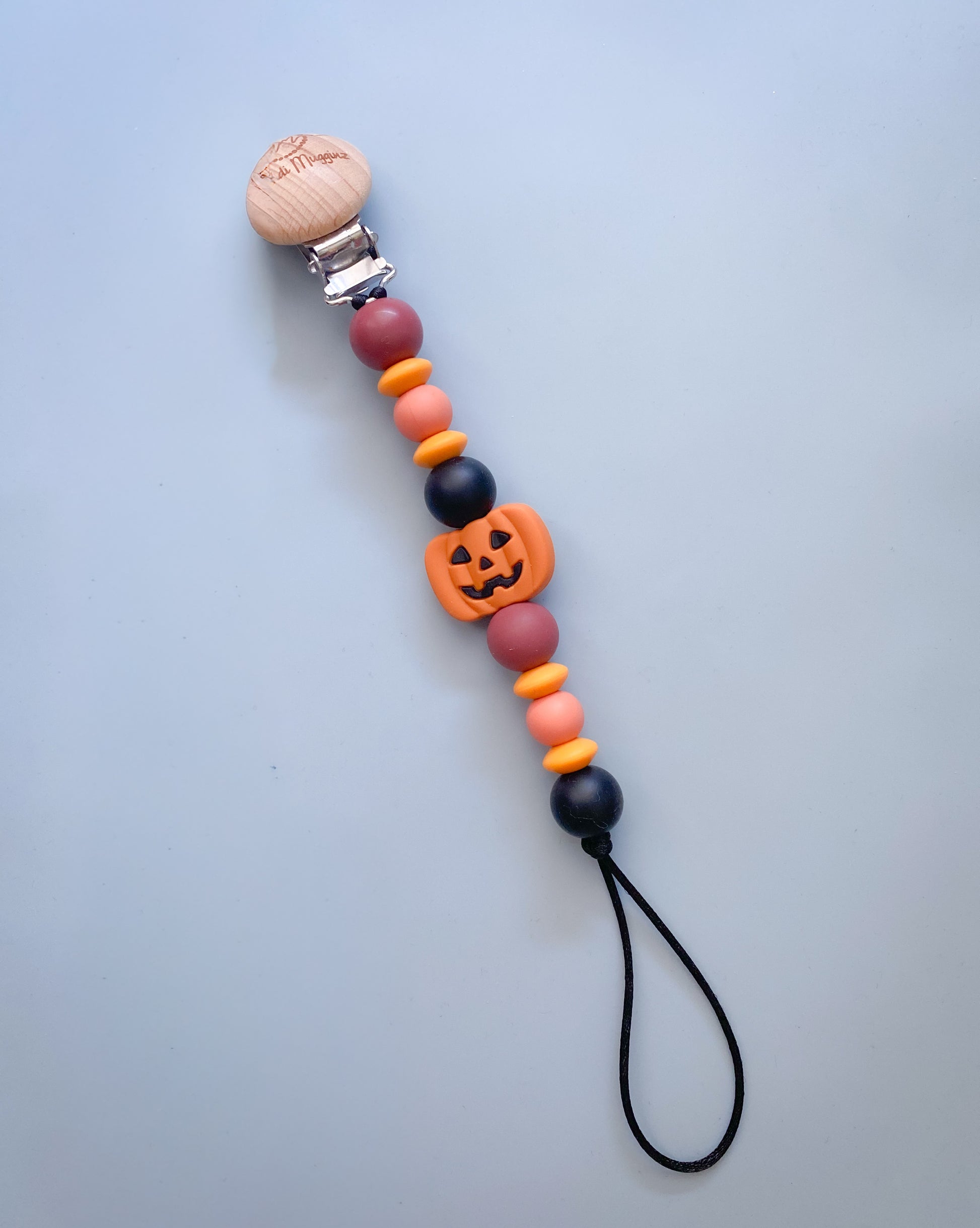 Keep little pumpkins happy and pacifiers close with this playful Jack-o-lantern Pacifier Clip. Crafted from 100% safe silicone beads, it’s gentle on baby’s gums and easy to clean. The festive design adds a fun Halloween touch while preventing pacifiers from getting lost or dirty—perfect for spirited fall days!